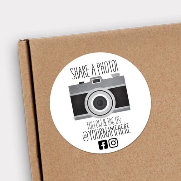 Share A Photo! Follow & Tag Us (Camera) - Custom Stickers